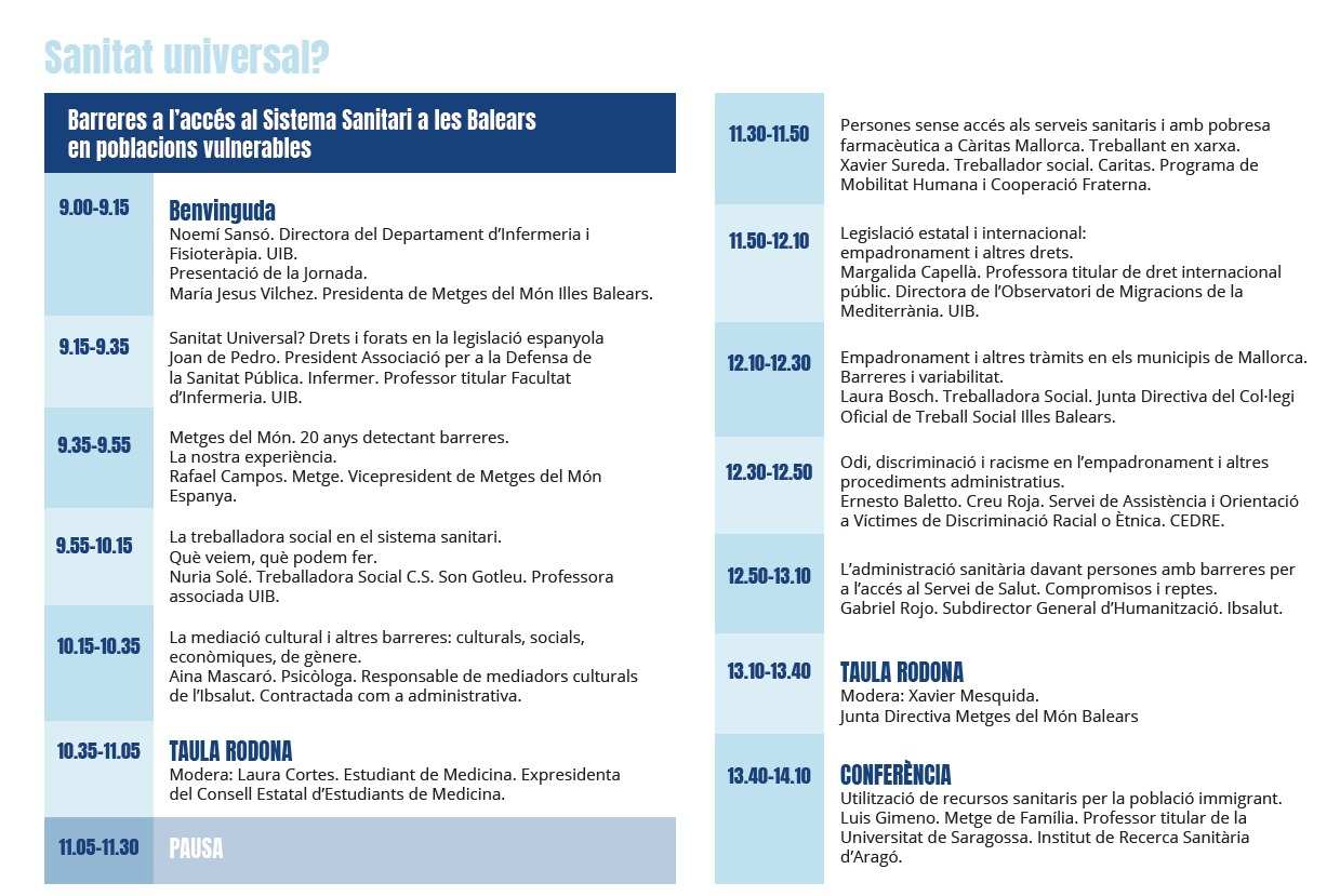 Jornada: Sanitat universal? Barreres per a l'accés a la sanitat pública a Balears – 21 de novembre de 2025