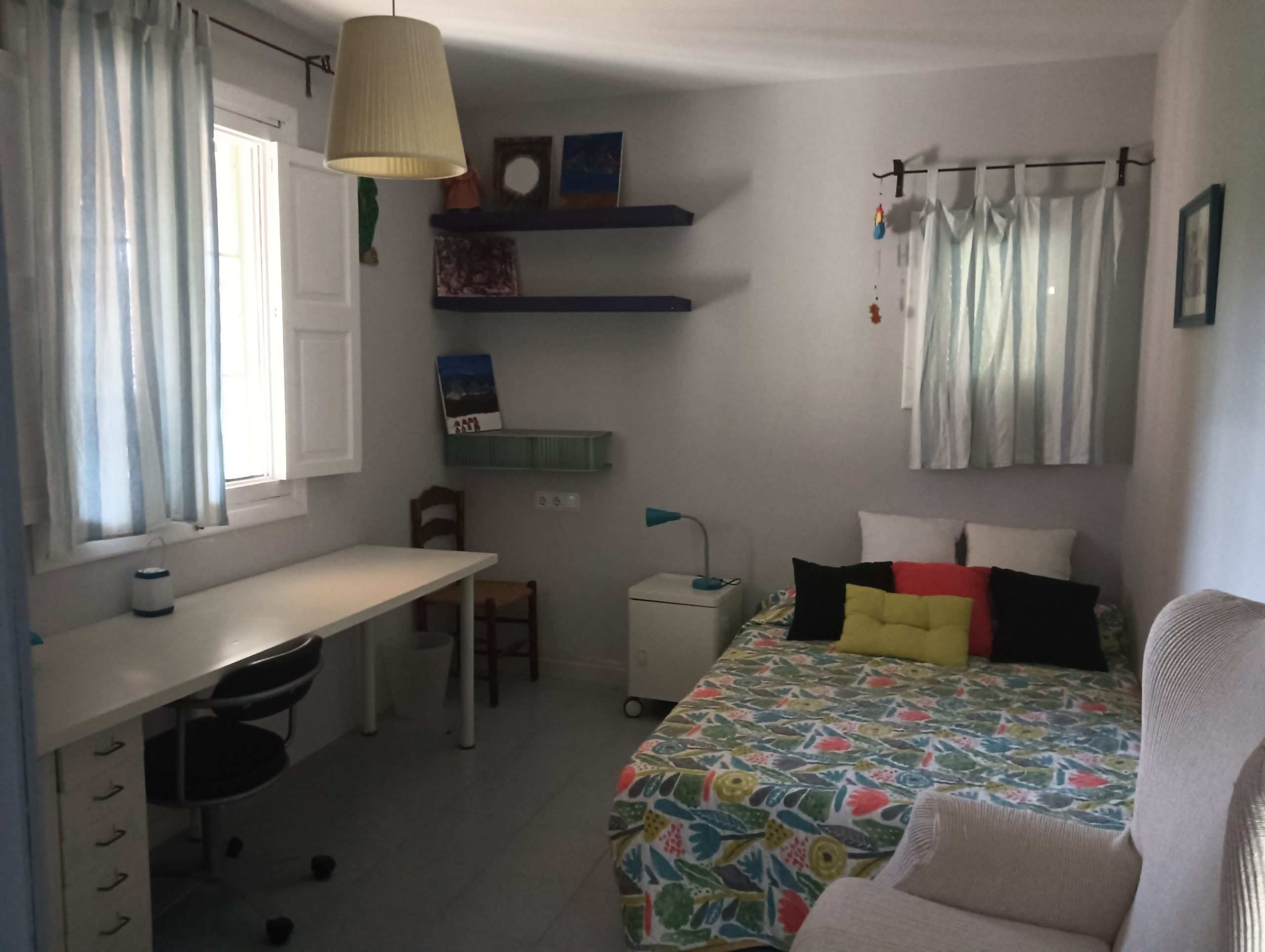 S’ofereix: habitació gran (llit de 135 cm.), amb bany i dret a cuina en casa unifamiliar amb jardí, Wifi, roba de llit i tovalloles.
