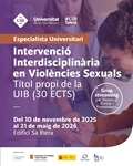 Especialista Universitario en Intervención Interdisciplinar en Violencias Sexuales 2025-2026. Título propio de la UIB (30 ECTS)