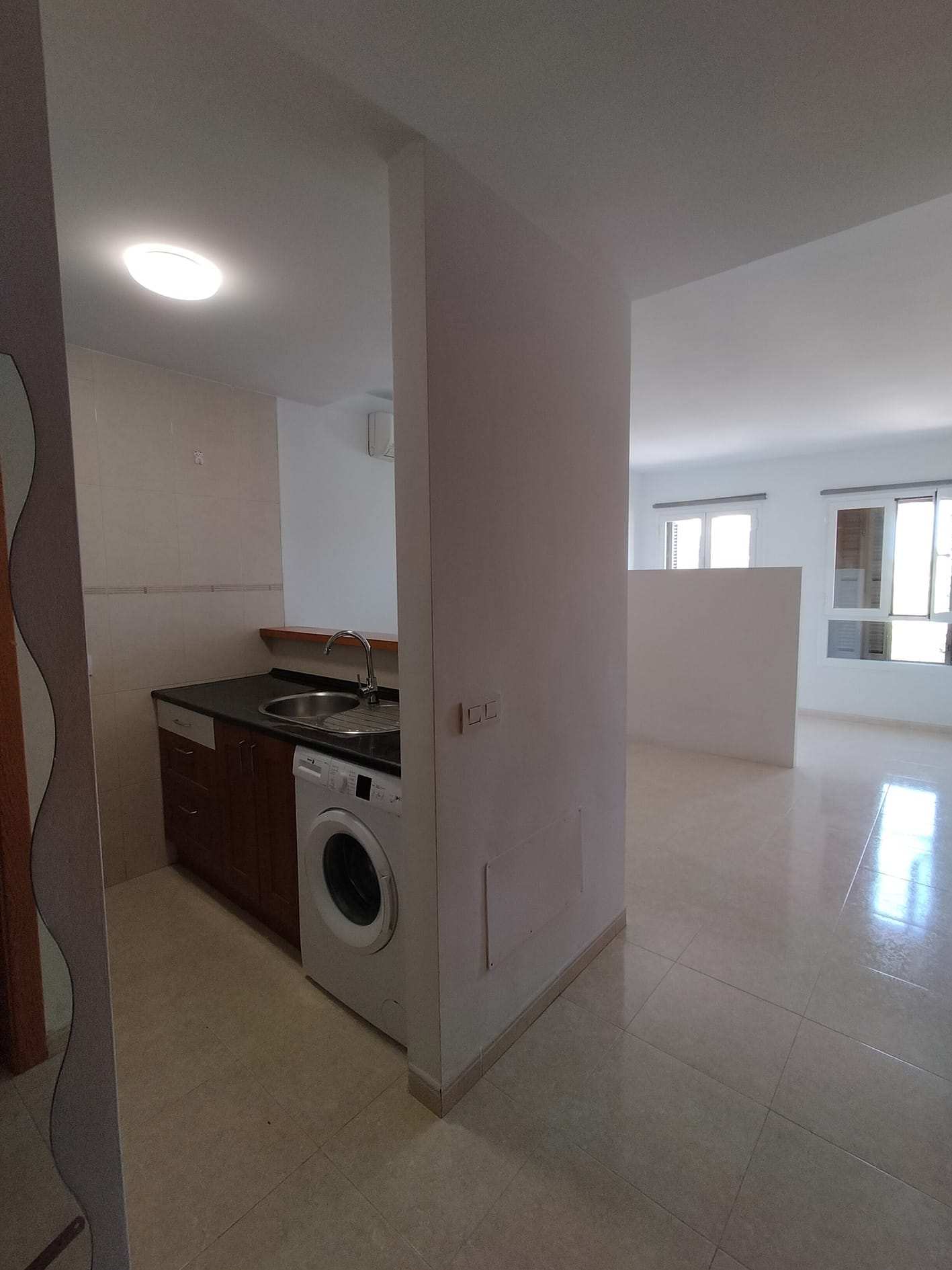 Se alquila estudio, de 30 m2. Consta de salón-comedor, cocina americana amueblada y equipada con nevera, placa vitrocerámica, horno, extractor de humos y lavadora, zona de dormitorio separada y 1 baño amplio. Muy luminoso, con ventanas de climalit, armario empotrado y bomba de frío y calor.